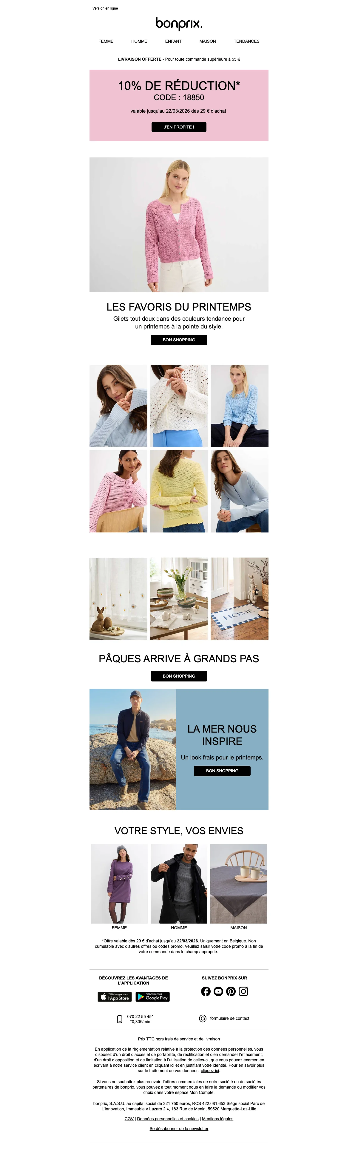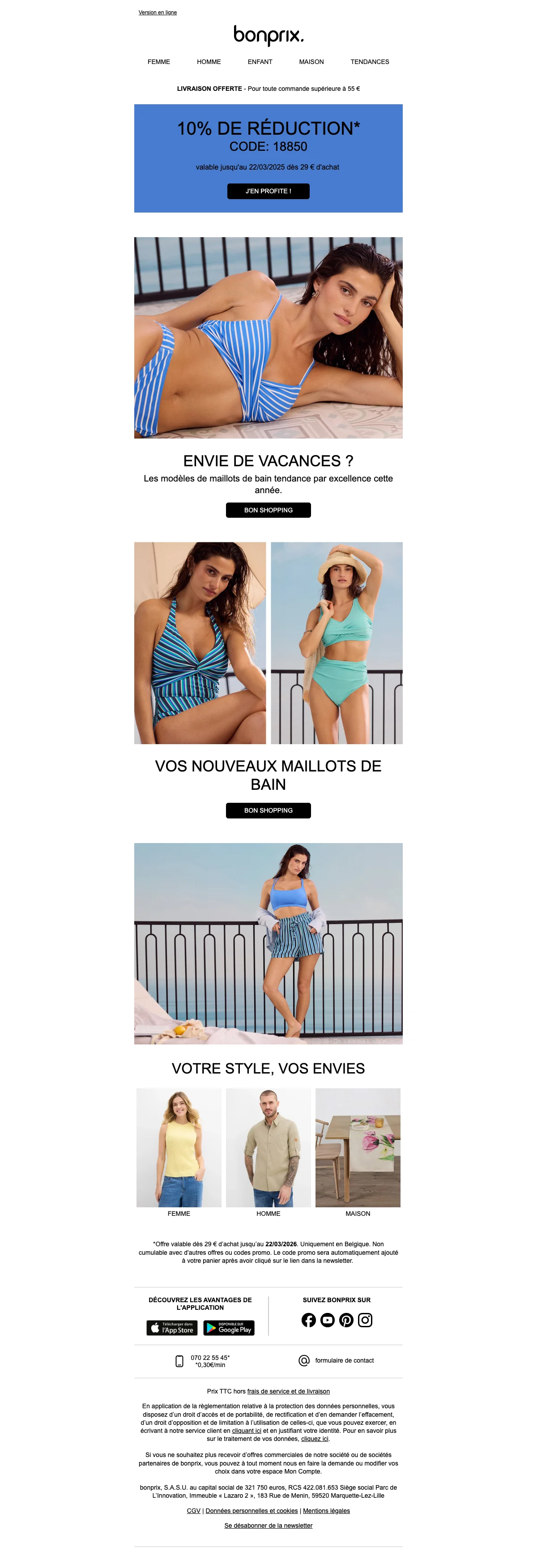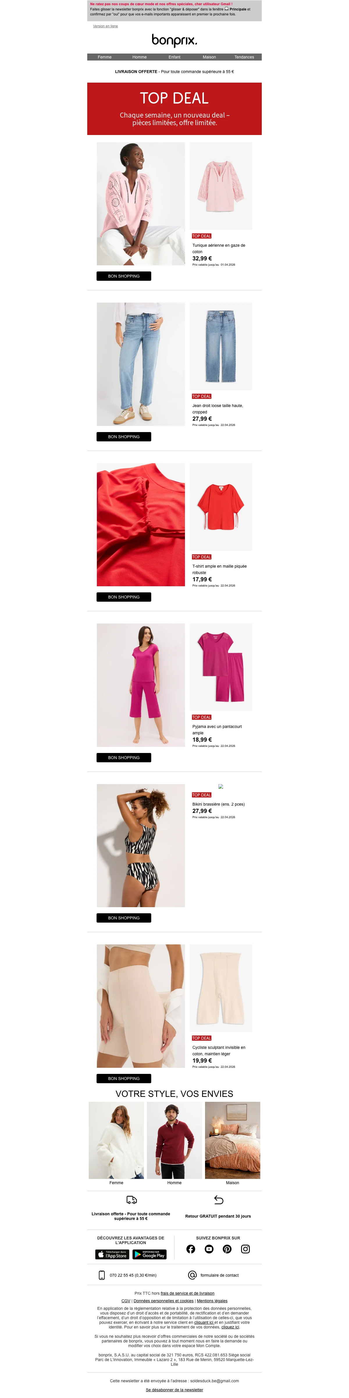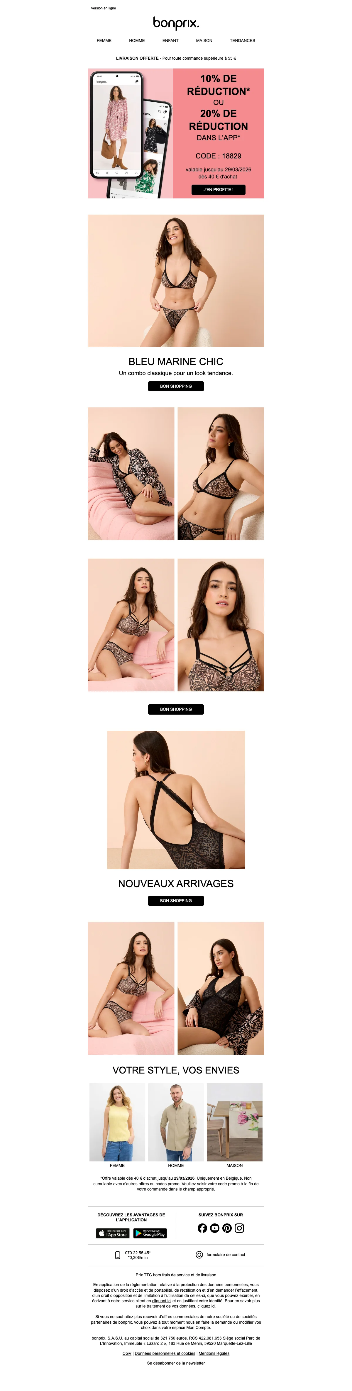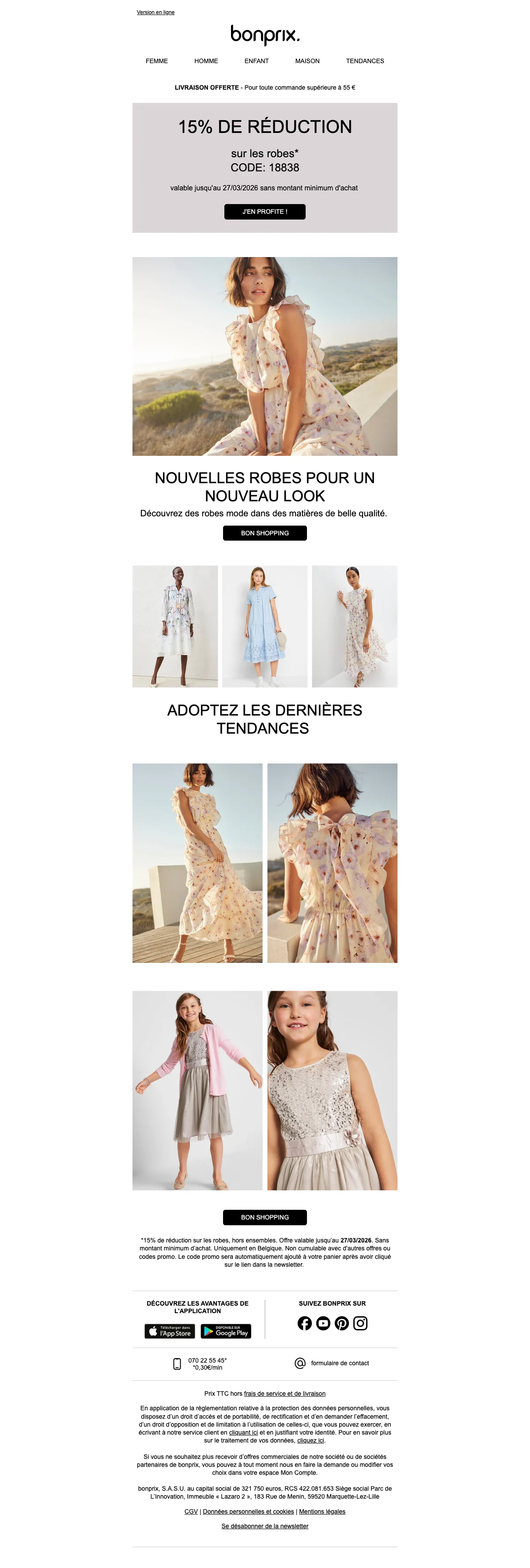 Bonprix catalogue belgique : livraison gratuite pour votre inscription newsletter