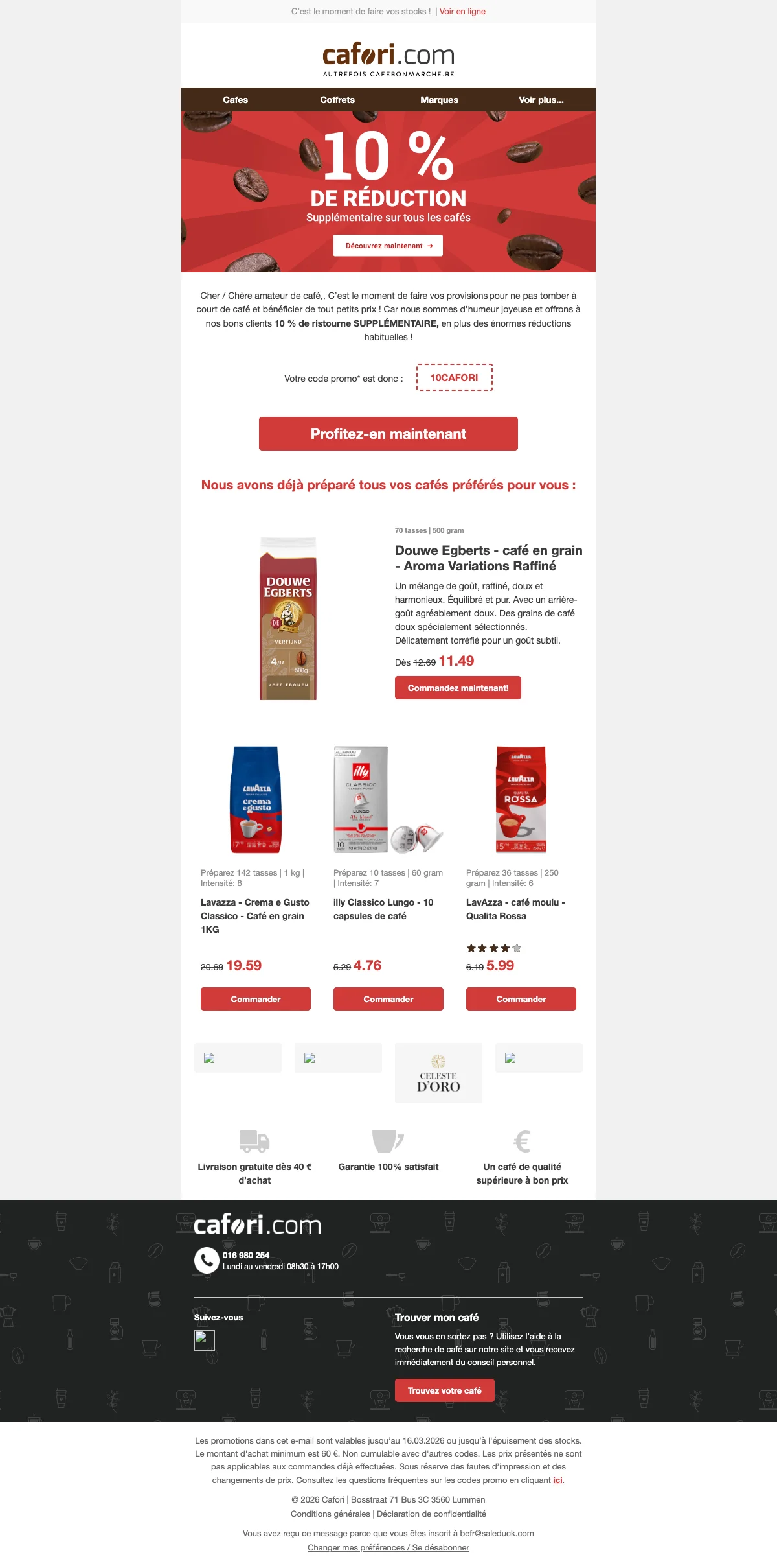 Cafori livraison gratuite + 10 € de réduction dès 100 €