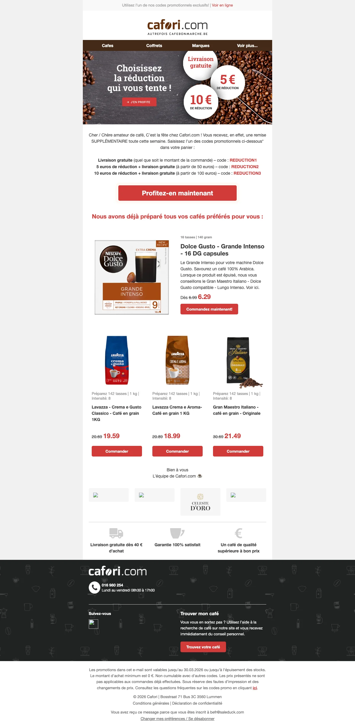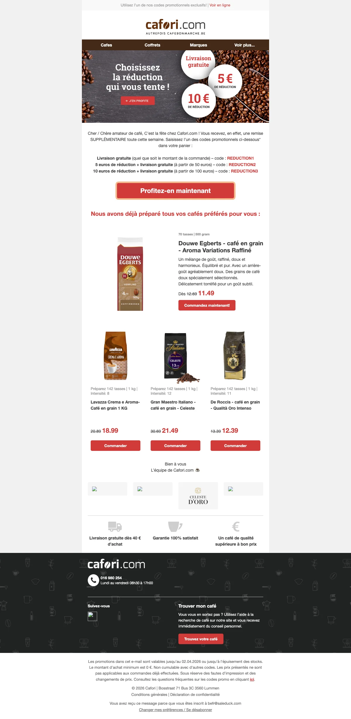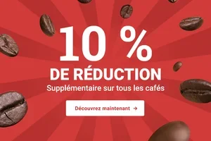 Profite de 10 € de réduction et de la livraison gratuite pour toute commande d'au moins 100 € ; idéal pour faire le plein de café. Offre valable jusqu'au 02/04/2026 et non cumulable avec d'autres codes.