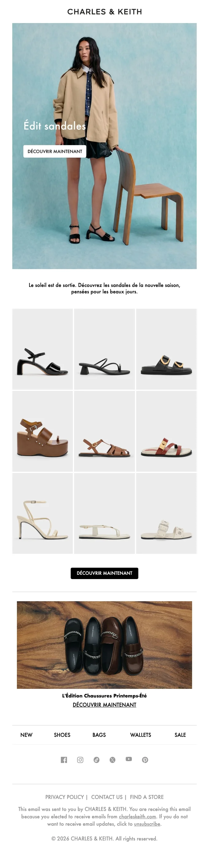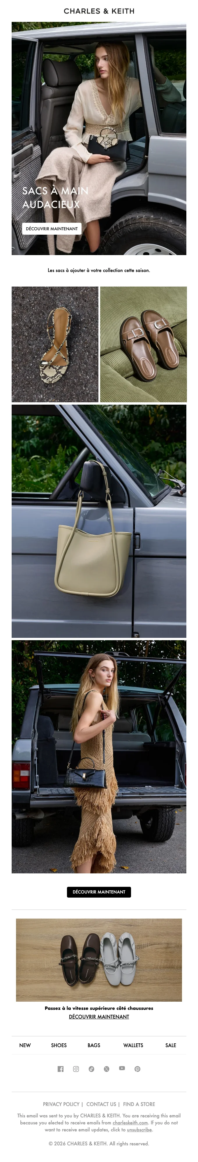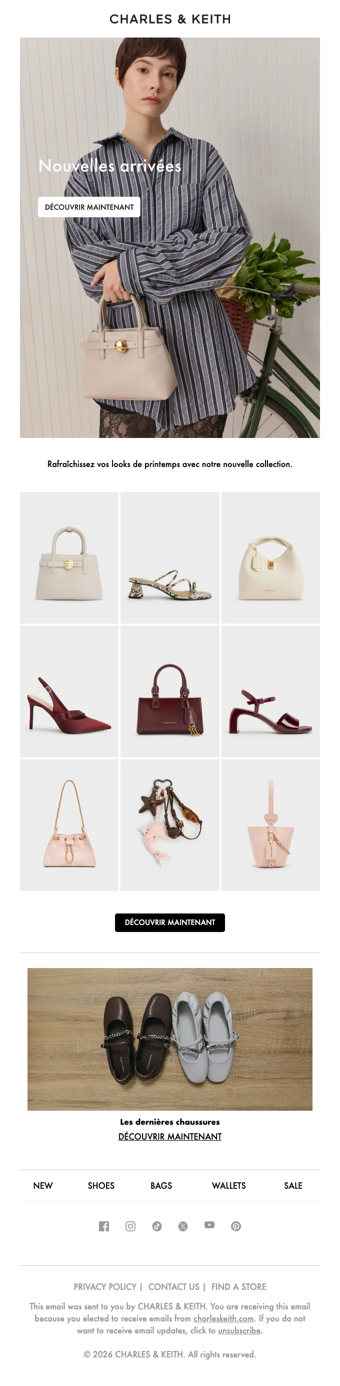 Charles & Keith abonnement newsletter : moins 10% sur votre commande