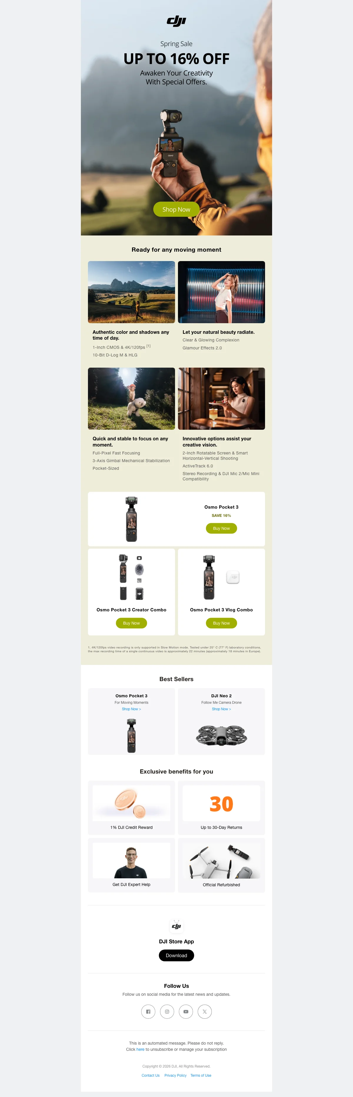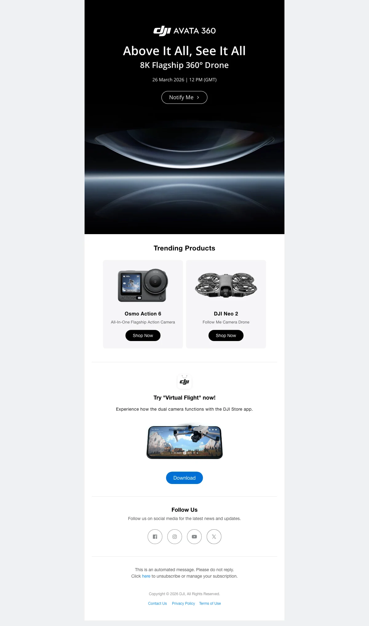 Nous surveillons en continu les offres de DJI via le site officiel, les réseaux partenaires et les newsletters des boutiques en ligne. Les nouvelles promotions sont contrôlées automatiquement et manuellement afin d’en vérifier la validité.