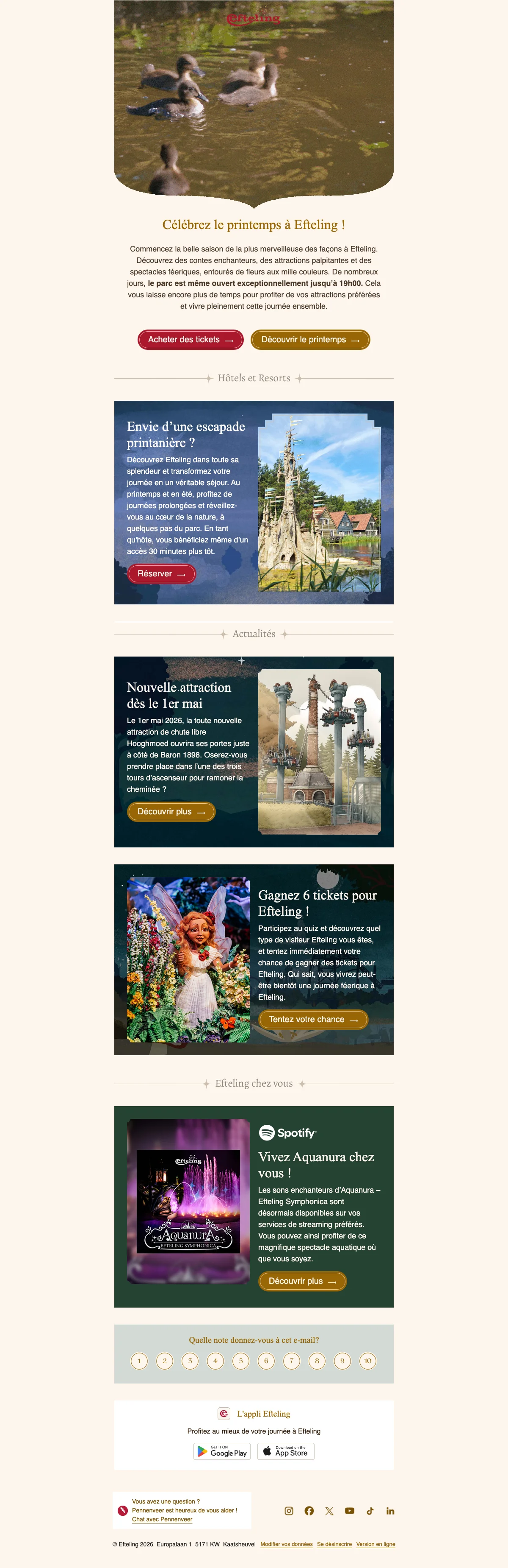 Pour vous faciliter un peu plus la vie, chez Soldesduck.be, nous avons recensé pour vous les meilleures codes promo Efteling sur cette page pour vous permettre de trouver votre billet parc d'attraction prix réduit en toute simplicité ! Rendez-nous fréquemment visite sur cette page pour vous tenir informés et ne jamais manquer le dernier code promo Efteling ! Vous pouvez également souscrire à notre newsletter et ainsi recevoir notre sélection de bons plans, promo et code réduction Efteling directement dans votre boîte mail ! Organiser votre prochaine escapade familiale depuis la Belgique n'aura jamais été aussi simple ! N'attendez plus pour réserver vos tickets Efteling pour une journée en famille.