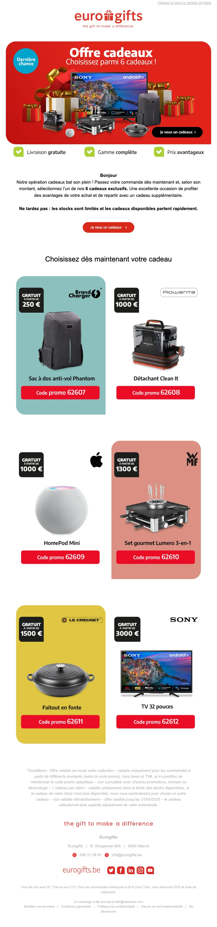 Eurogifts promotion cadeau gratuit à choisir selon montant