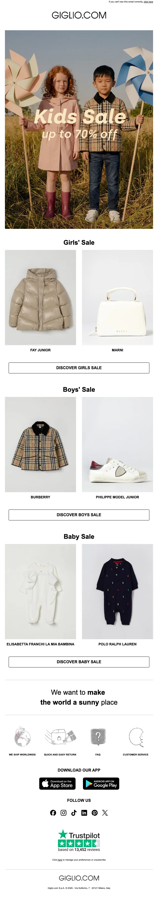 Giglio soldes articles enfants : à partir de 50 € — marques luxe incluses
