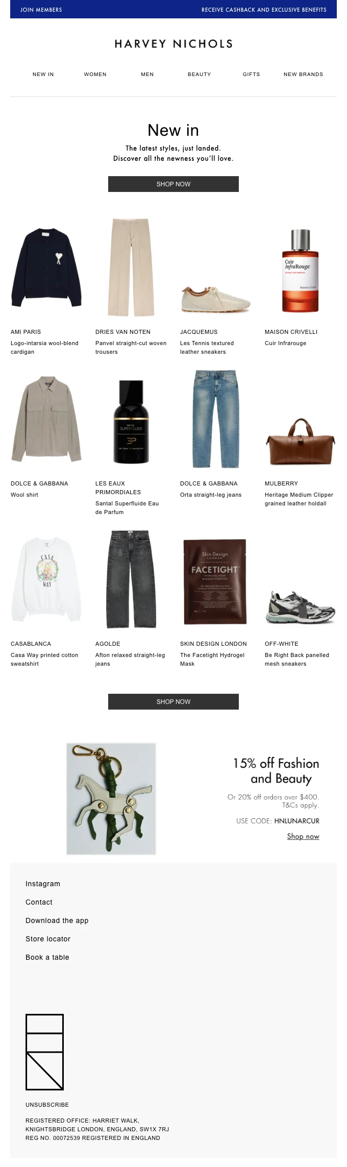 Harvey Nichols vente extra 15% sur articles déjà en promotion