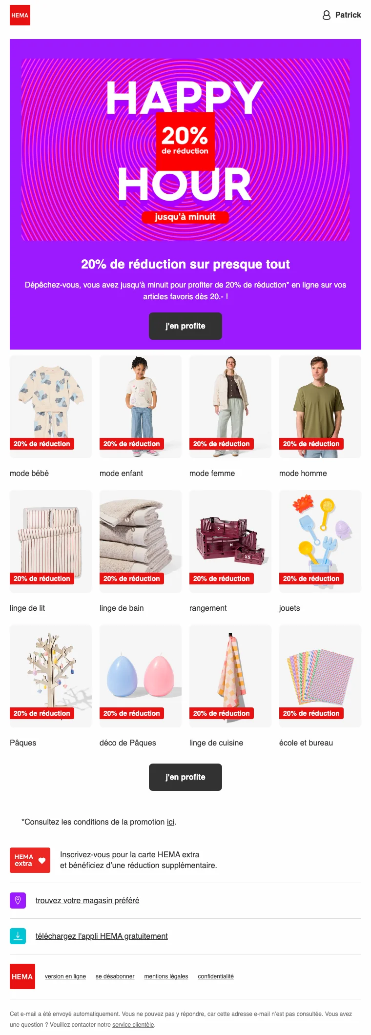 Hema vente flash 20% de réduction sur presque tout ce soir