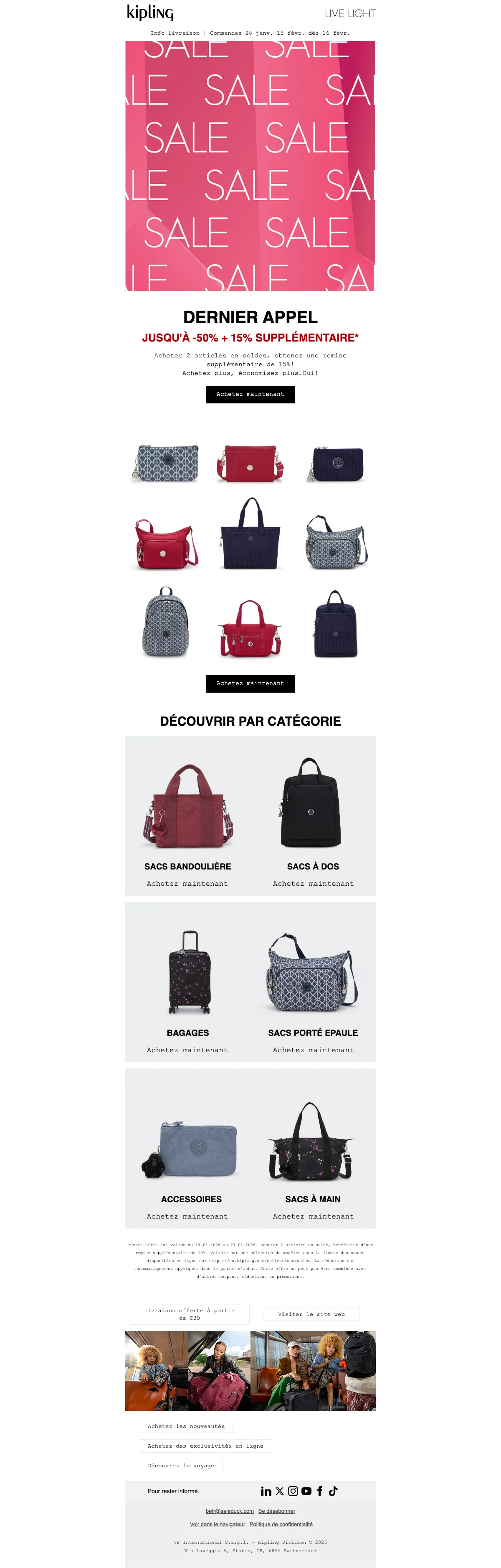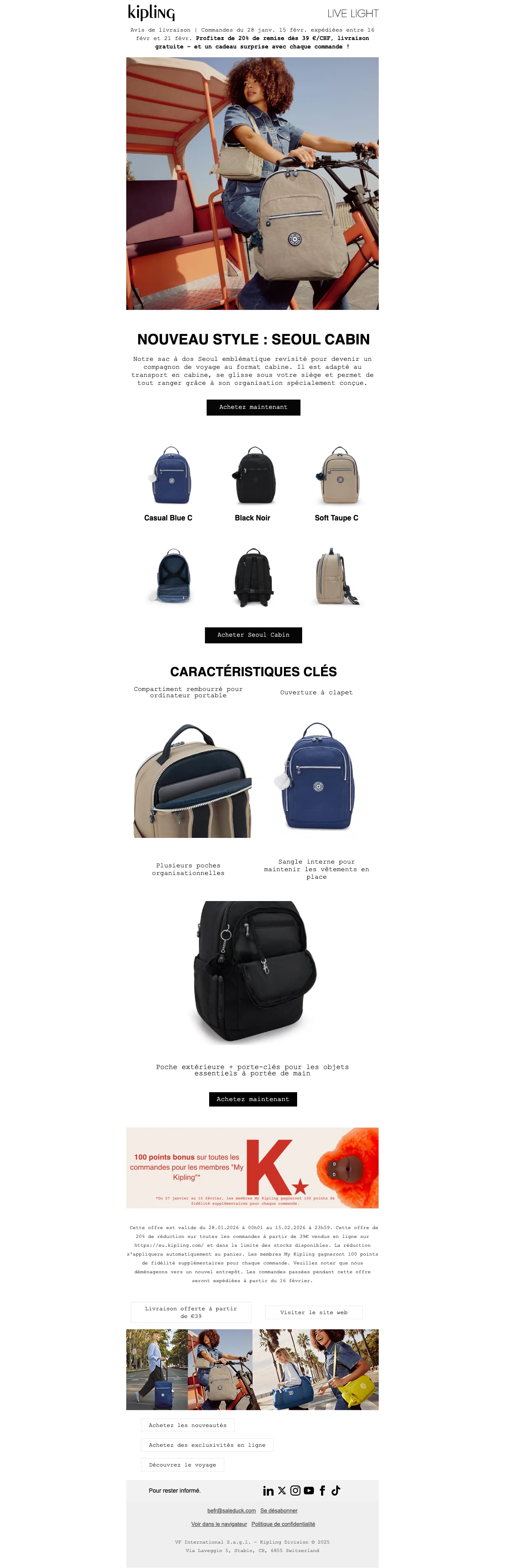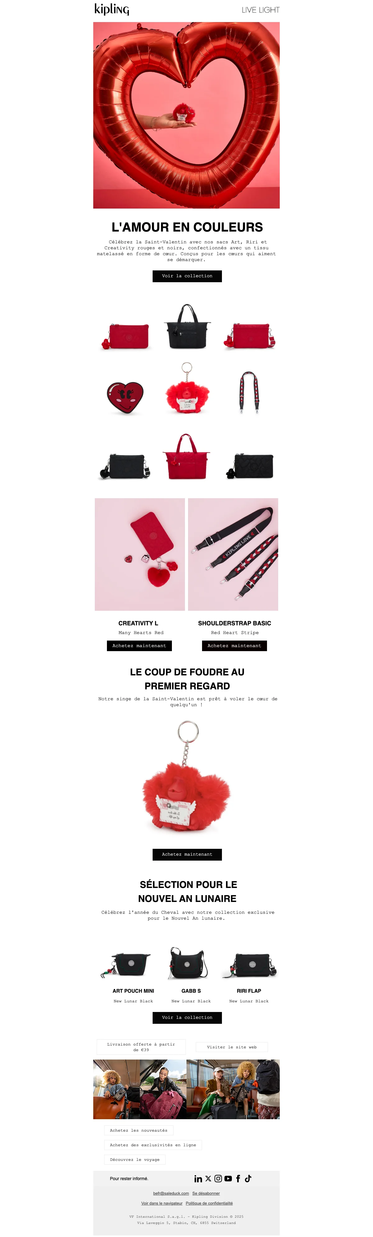 Profite de la livraison offerte sur les nouvelles exclusivités Kipling x Peanuts pour tout achat à partir de 39€. En plus, un adorable porte-clés Snoopy est offert avec chaque achat. Ne manque pas cette chance de célébrer avec style !