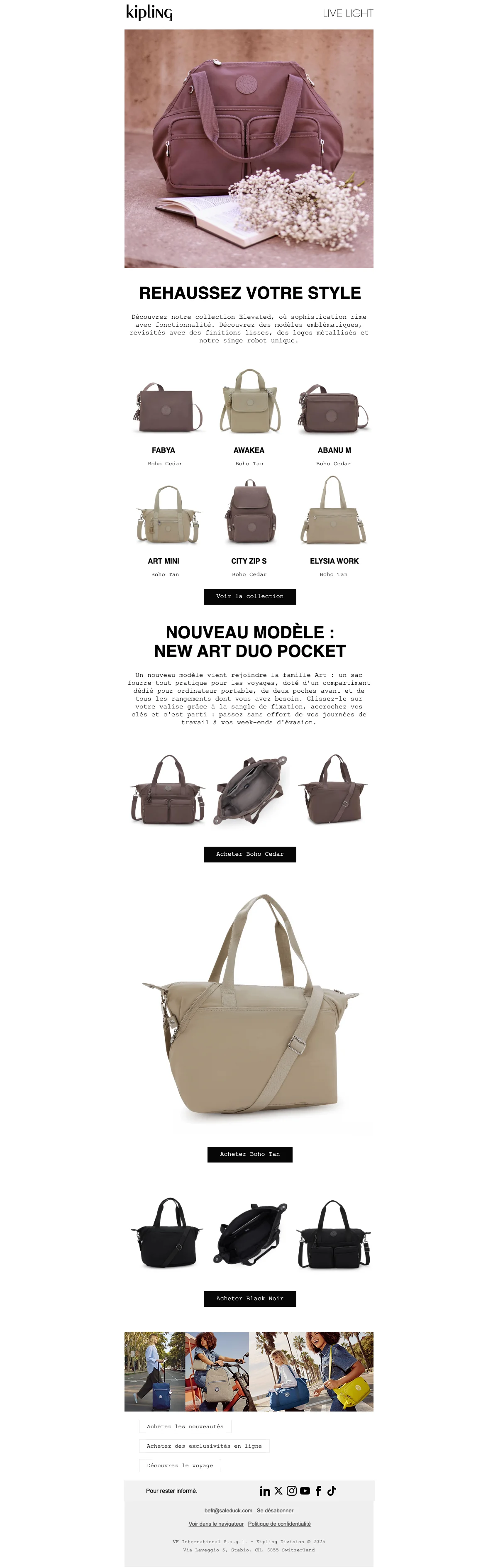 Kipling articles en soldes 15% réduction supplémentaire, jusqu'à 50%