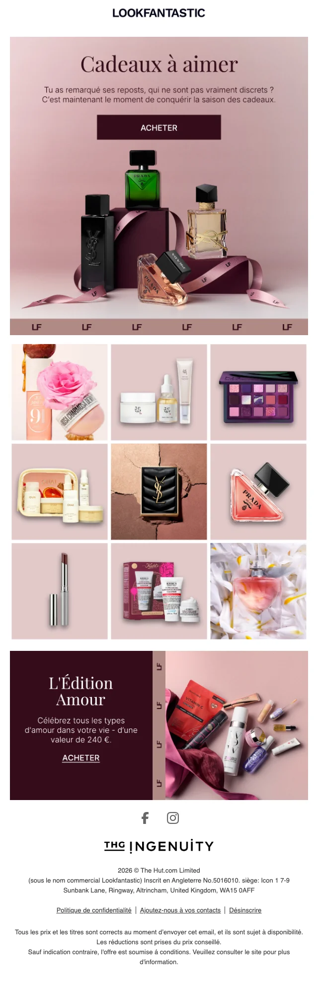 Lookfantastic beauté 22% sur marques comme Yves Saint Laurent