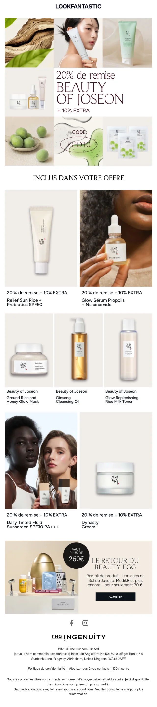 | LFBB10 | LookFantastic code promo : votre 1ère box pour seulement 10€ |