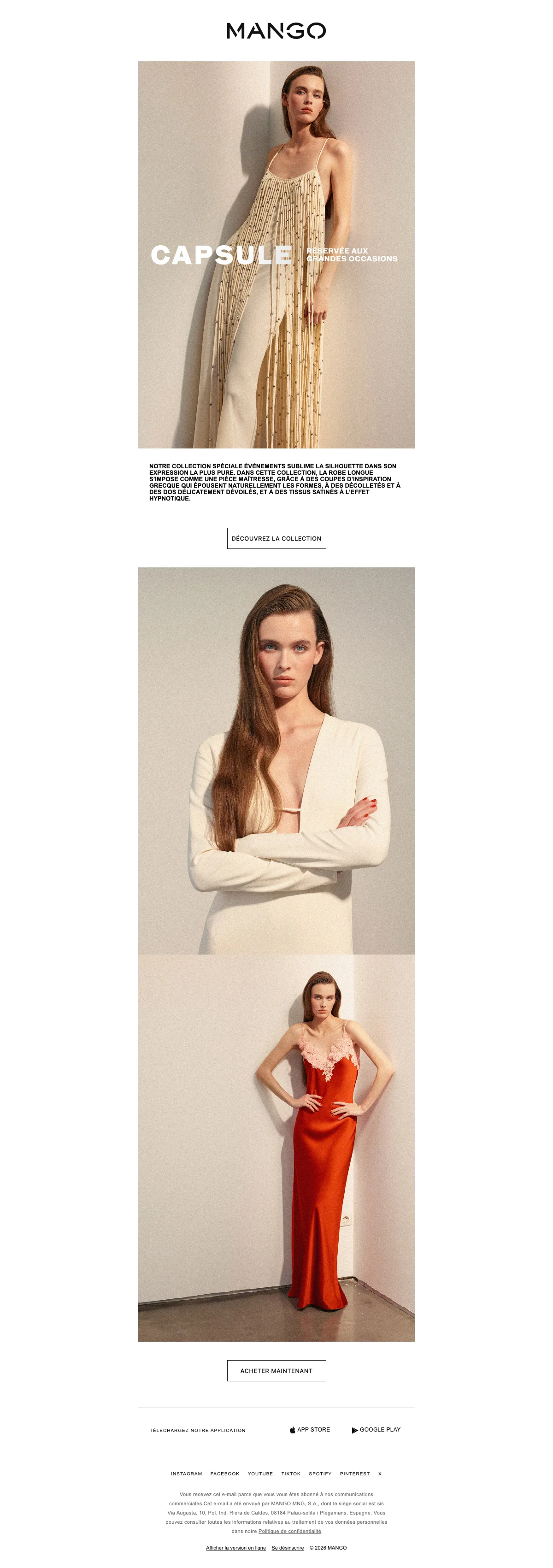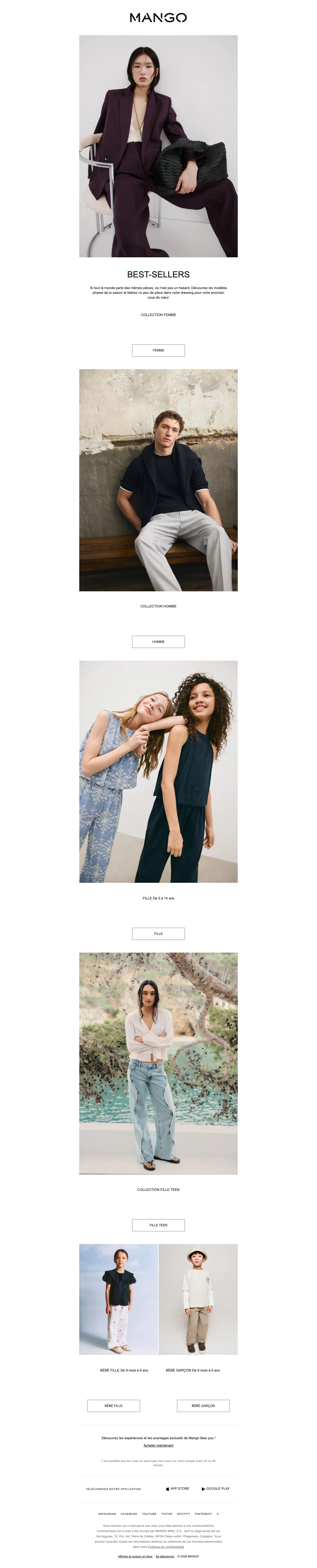 Conçu à Barcelone depuis 1984, Mango offre un style européen distinctif et contemporain adapté à toutes les générations.