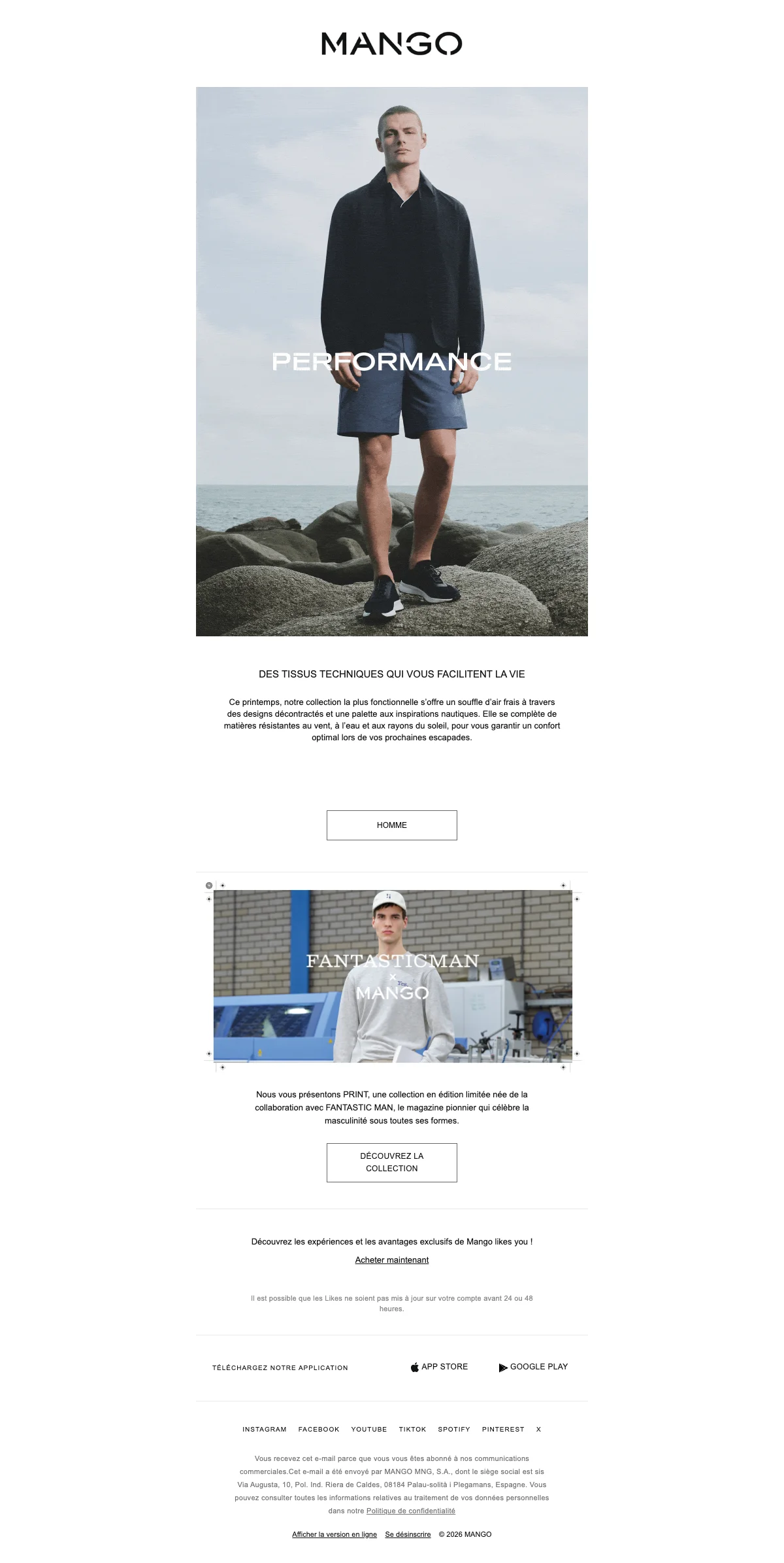 Le/la Mango code promo est MANGOLIKESYOU. Saisissez notre code pour Mango 2026 dans le formulaire de paiement et bénéficiez de réductions exclusives. Mango code promo : 10% d'économie sur votre prochaine commande.
