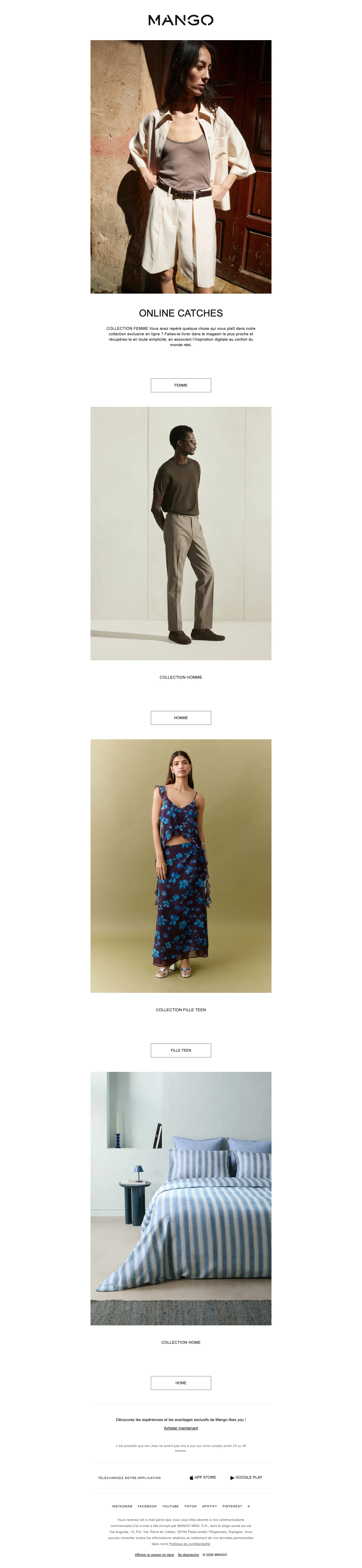 1. Vous devrez dans un premier temps vous rendre sur la boutique en ligne Mango. Vous y trouverez de nombreux produits, en toute saison