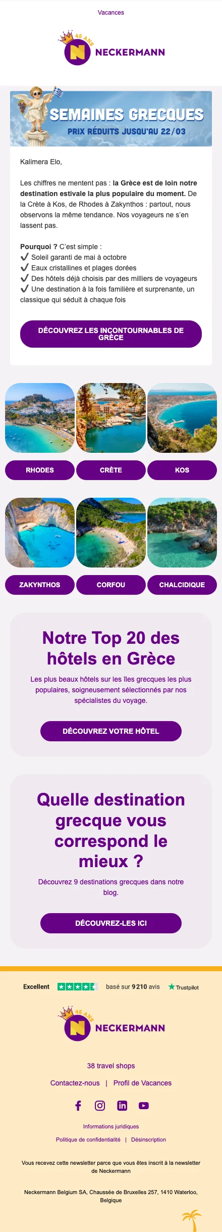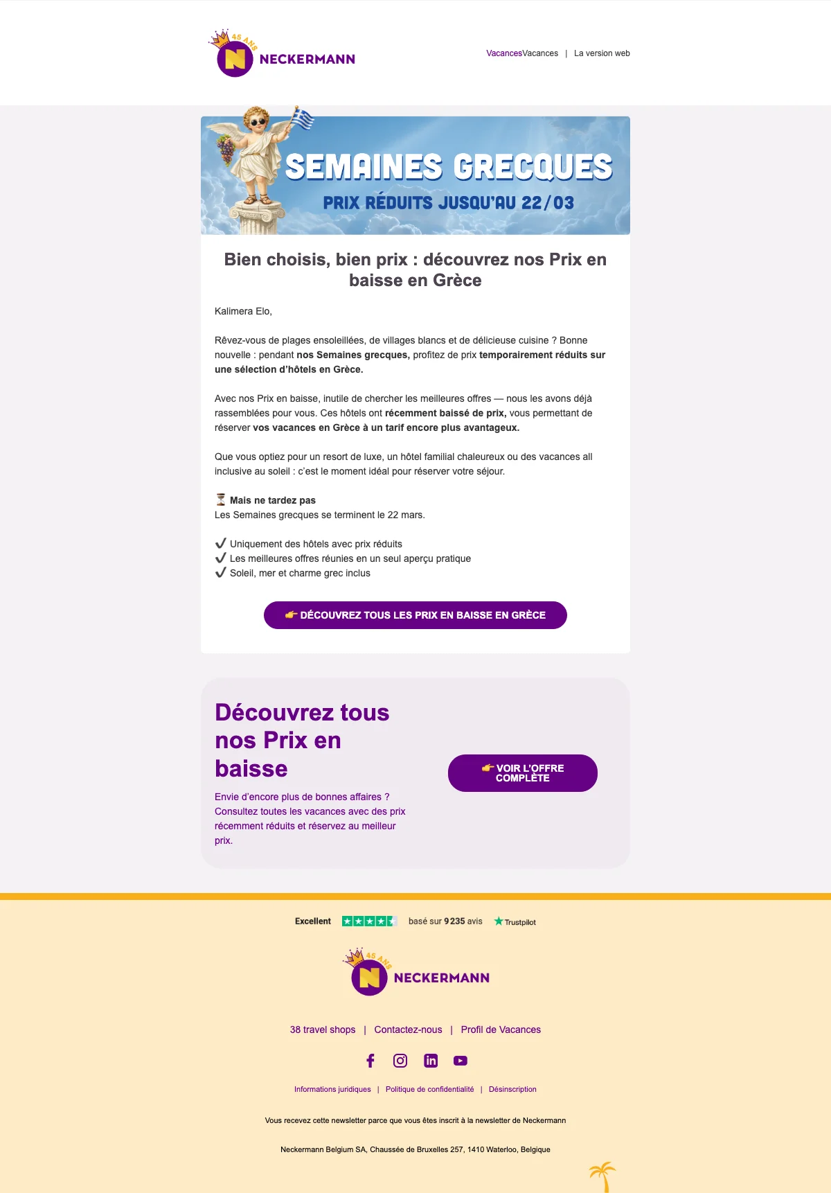 Neckermann semaines grecques prix réduits sur hôtels en Grèce