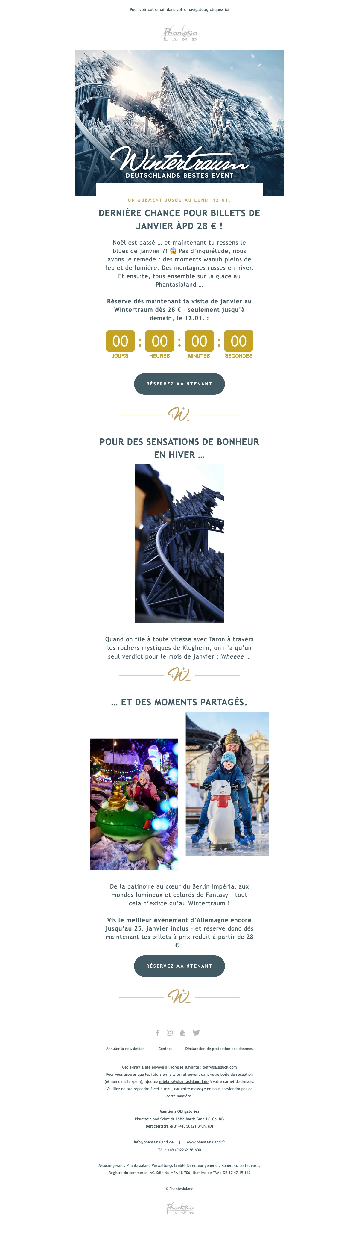 Les vacances arrivent à grande vitesse et avec elles les beaux jours d'été. Ne perdez pas de temps à tergiverser et réservez dès maintenant votre journée à Phantasialand ! Ne cherchez plus dans quel parc emmener votre famille ou vous rendre à deux pour un moment en amoureux, avec les offres soldesduck.be, nous vous adressons les dernières promotions et codes promotionnels vous permettant de profiter du meilleur parc d'attraction à prix réduit. Pour toute la famille, il suffit de vous rendre sur soldesduck pour être au courant de toutes les offres en nouveauté.