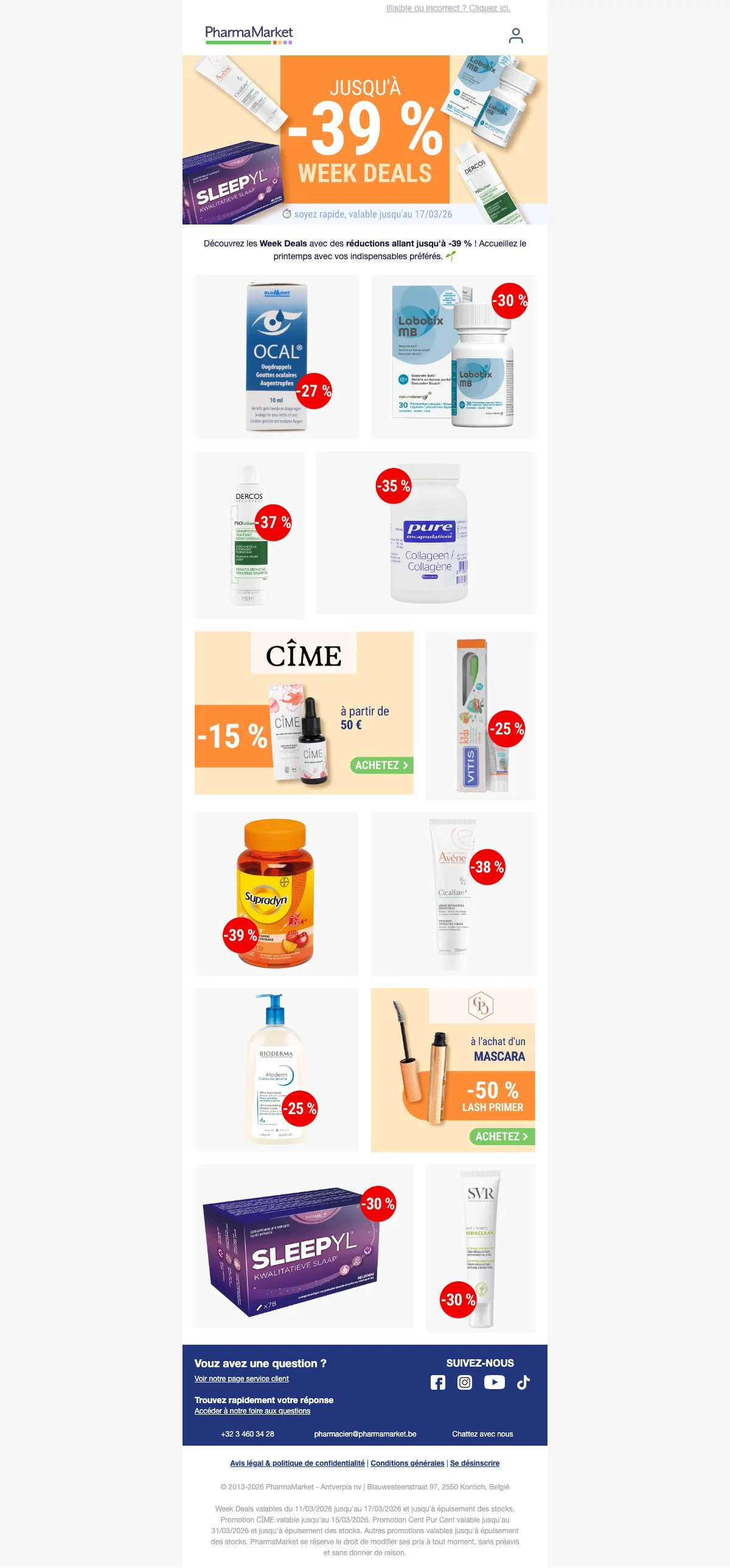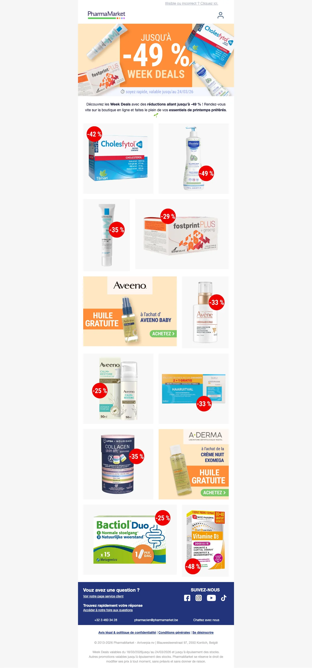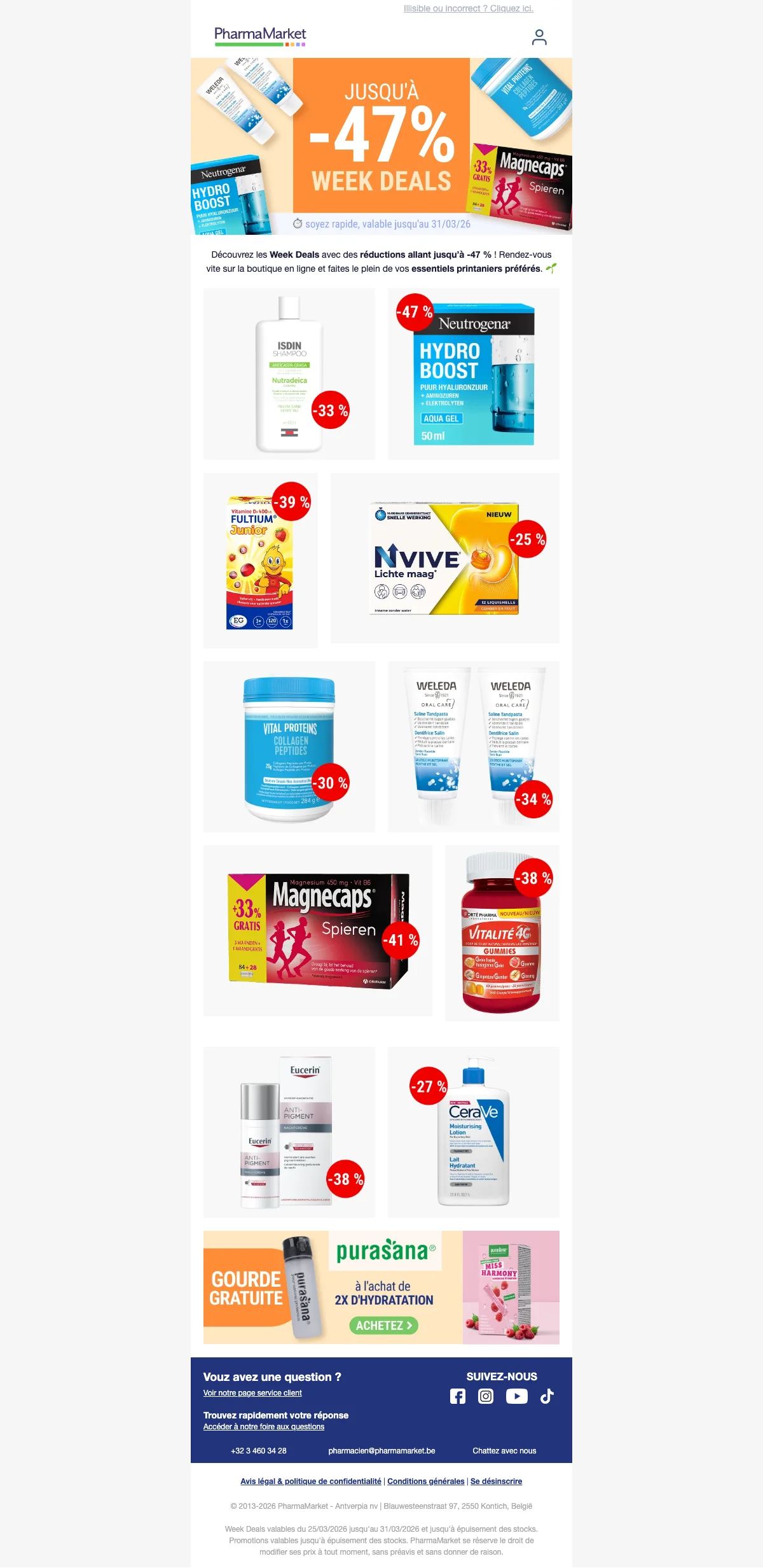 Réduction de jusqu'à 50% sur les Week Deals PharmaMarket belgique