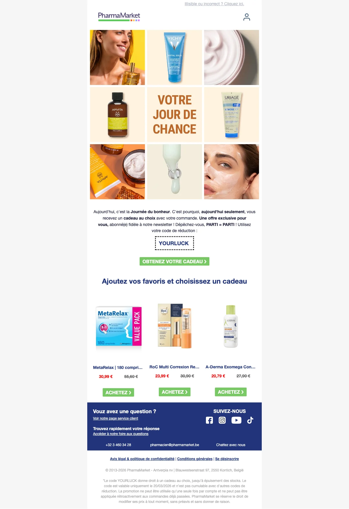 PharmaMarket jour du bonheur: cadeau gratuit avec commande