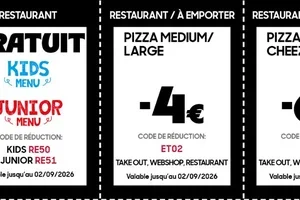 Chaque mercredi, commandez 2 pizzas médiums et recevez la 3ème gratuite ! C'est une excellente occasion de partager un moment convivial autour de délicieuses pizzas. Profitez de cette offre valable pour les commandes à emporter et les livraisons à domicile.
