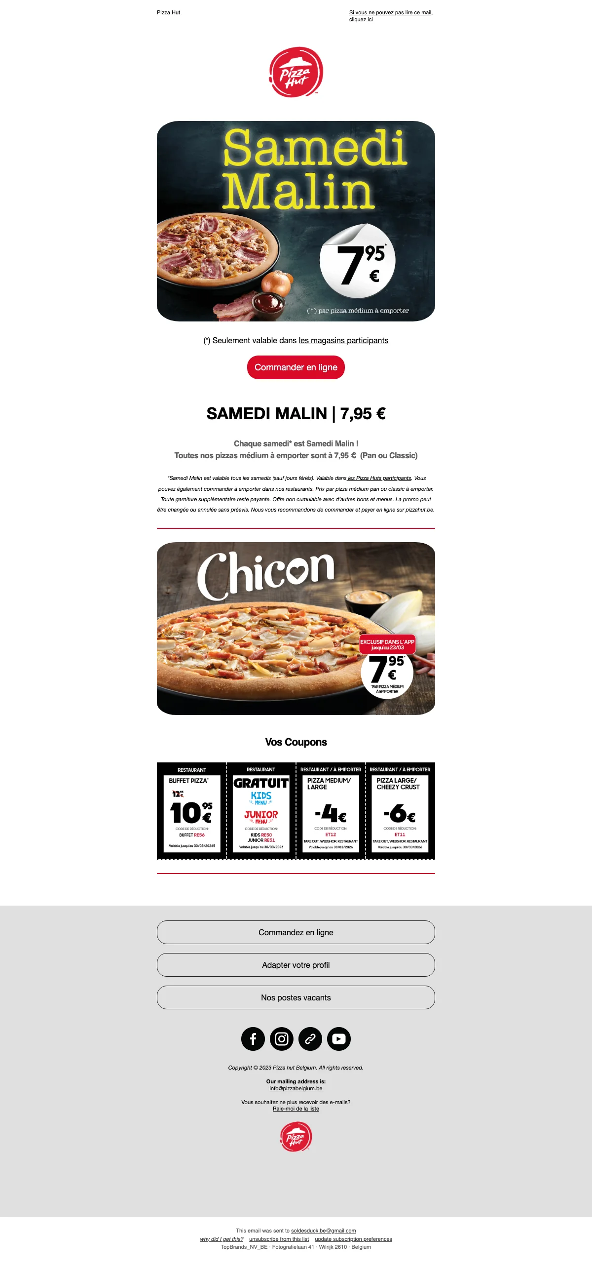 Pizza Hut samedi malin pizza medium à 7,95 € à emporter