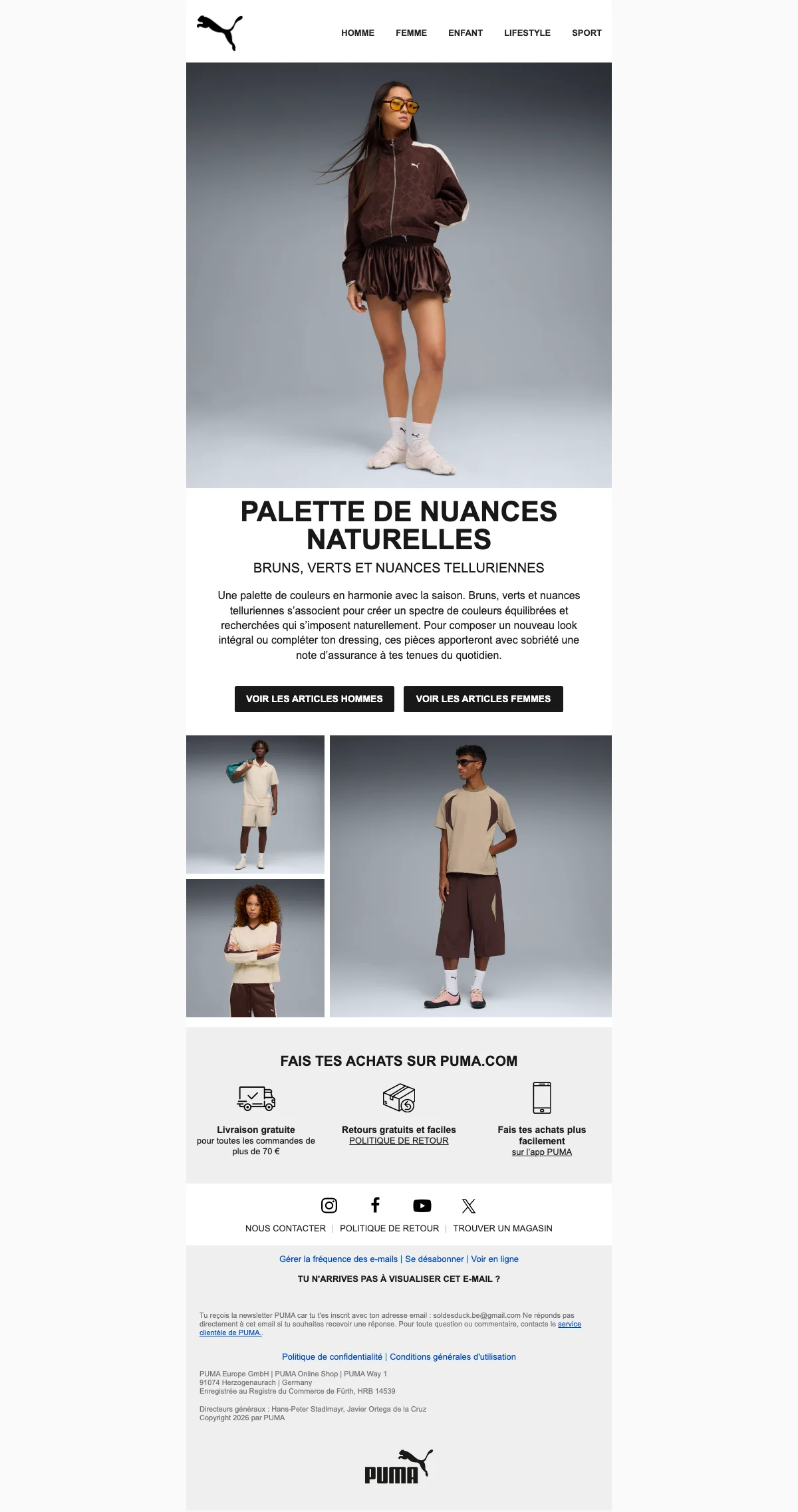 Nul besoin de présenter la marque au félin bondissant, Puma, célèbre dans le monde entier pour ses articles de sport alliant style et qualité, dans l'effort ou à la ville. Fondée en 1948 en Allemagne par Rudolf Dassler, la marque est aujourd'hui présente dans plus de 120 pays, et elle ne cesse de collaborer avec de grands sportifs tels que Usain Bolt, Pelé, Maradona ou encore Antoine Griezmann. Elle est d'ailleurs le sponsor officiel des équipes de football d'Italie, d'Autriche, de Suisse, d'Arsenal ou encore de Dortmund. Cela explique sa popularité au travers des amoureux du sport !