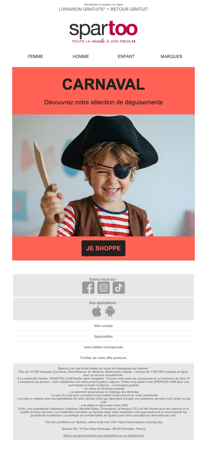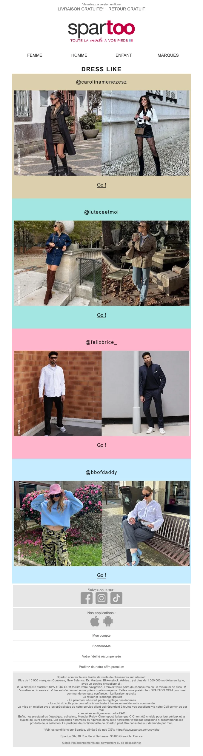 Créée en 2006 par le trio Boris, Paul et Jérémie, Spartoo.com était une site de vente en ligne initialement spécialisé dans la vente de chaussures de marque, la plateforme se diversifie rapidement pour proposer à ses clients une large sélection de vêtements homme, femme mais aussi enfant !