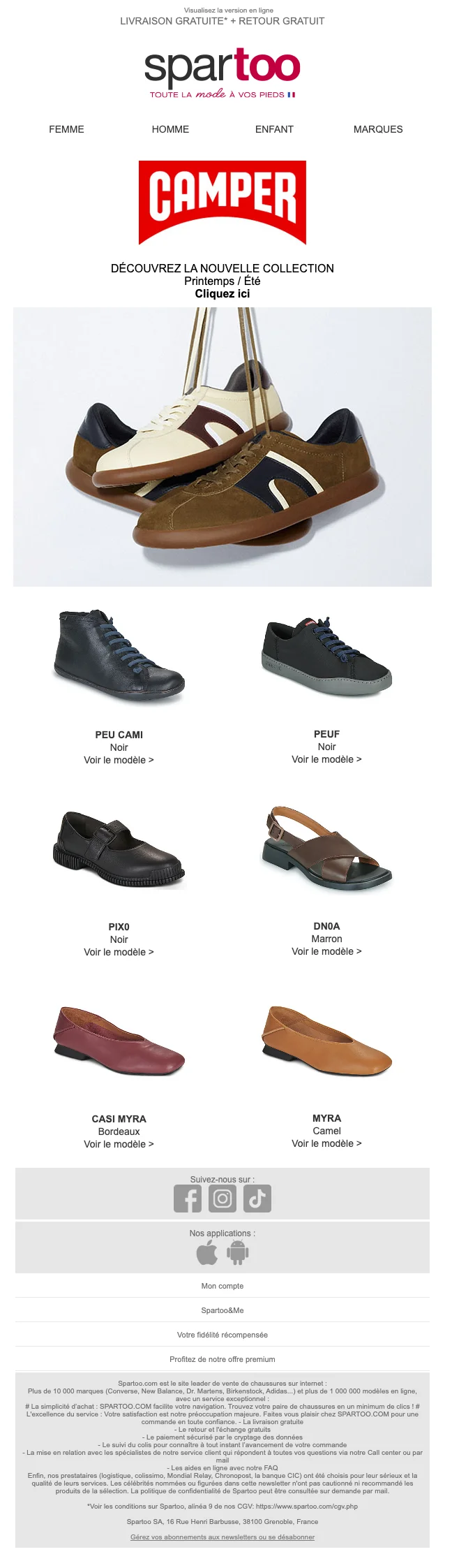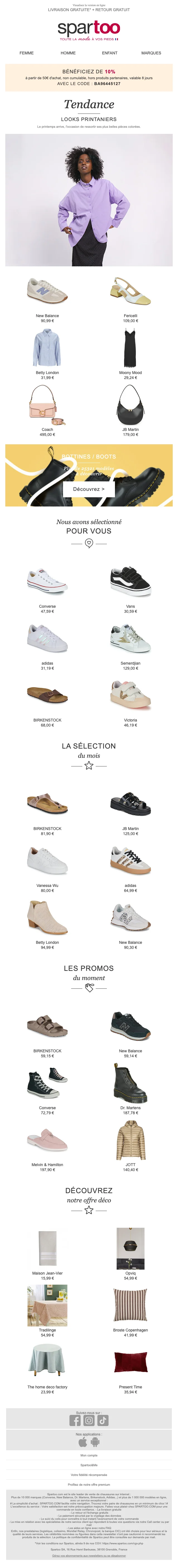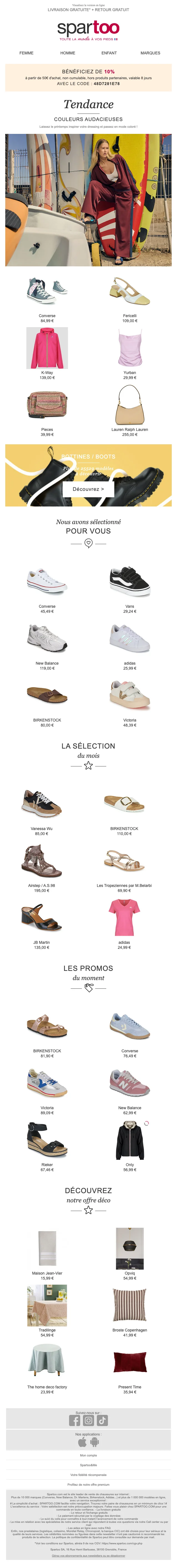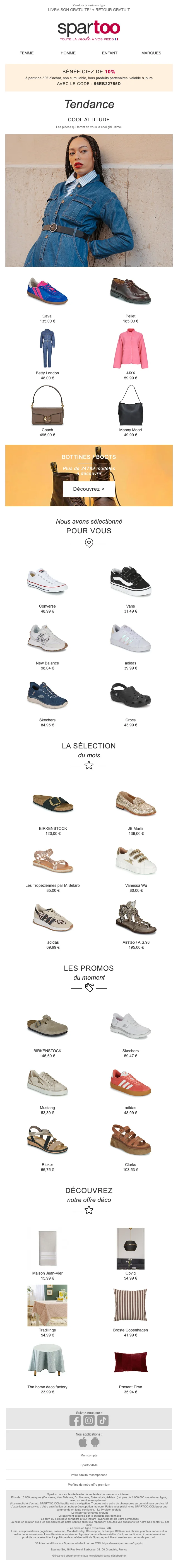 Toujours à la recherche de la dernière paire de chaussures tendance ou de vêtements de marque difficile à obtenir sur le marché ? Même en cherchant en ligne vous avez des difficultés à trouver le modèle que vous voulez ? Ne perdez pas espoir vos vêtements et chaussures de marque sont très certainement sur la boutique en ligne Spartoo !