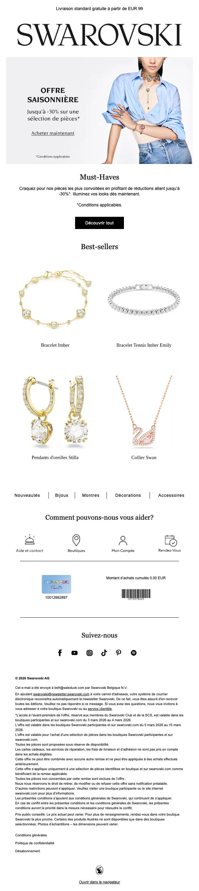 | WELCOME | code promo Swarovski : 10% de réduction sur votre commande |