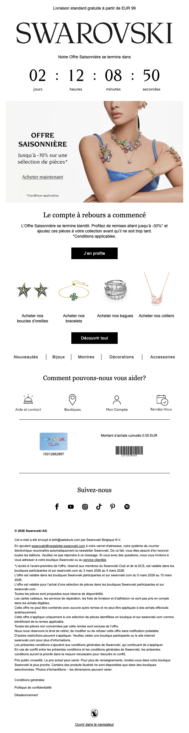 Swarovski offre saisonnière : jusqu'à -30% et livraison gratuite