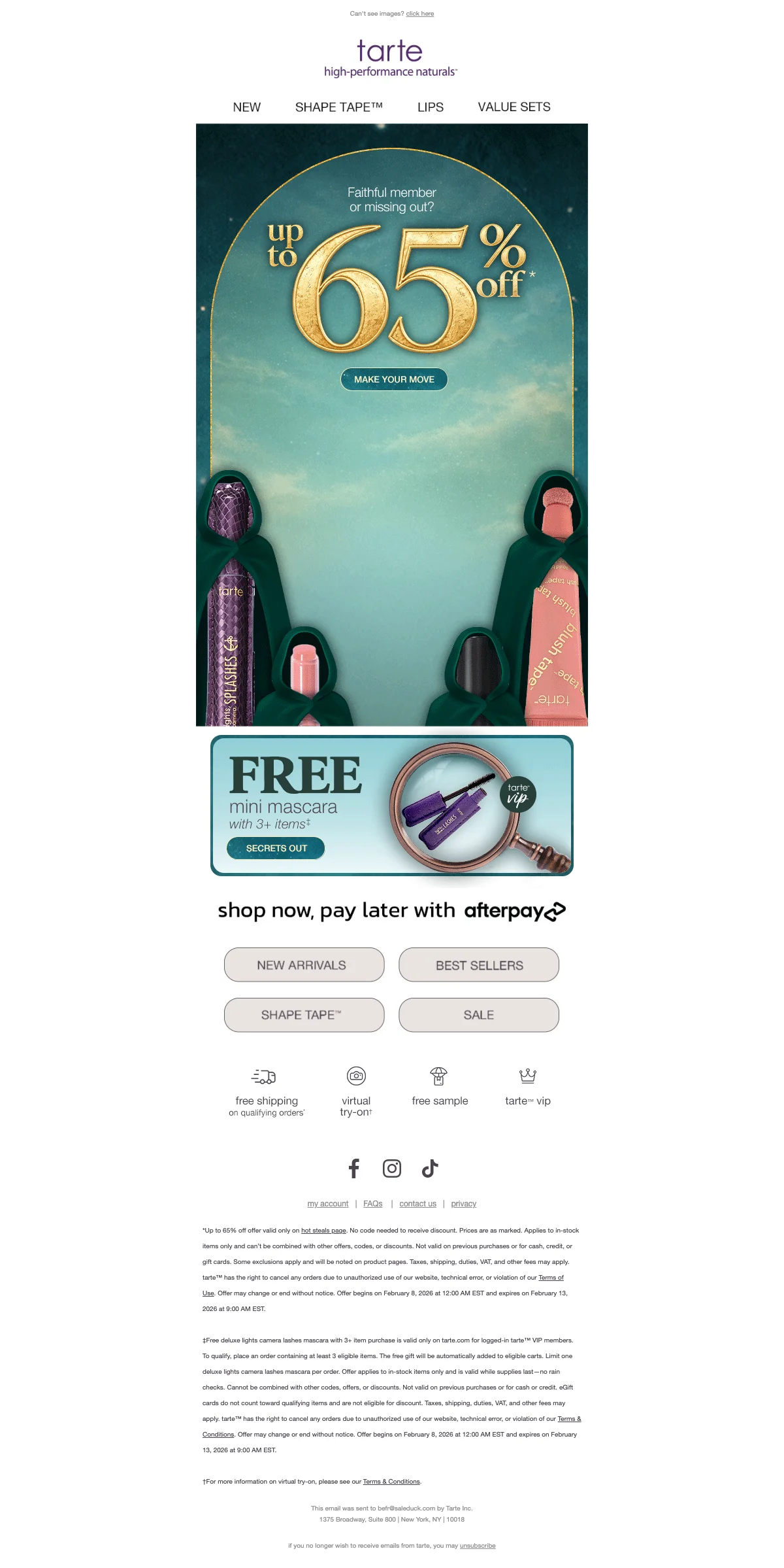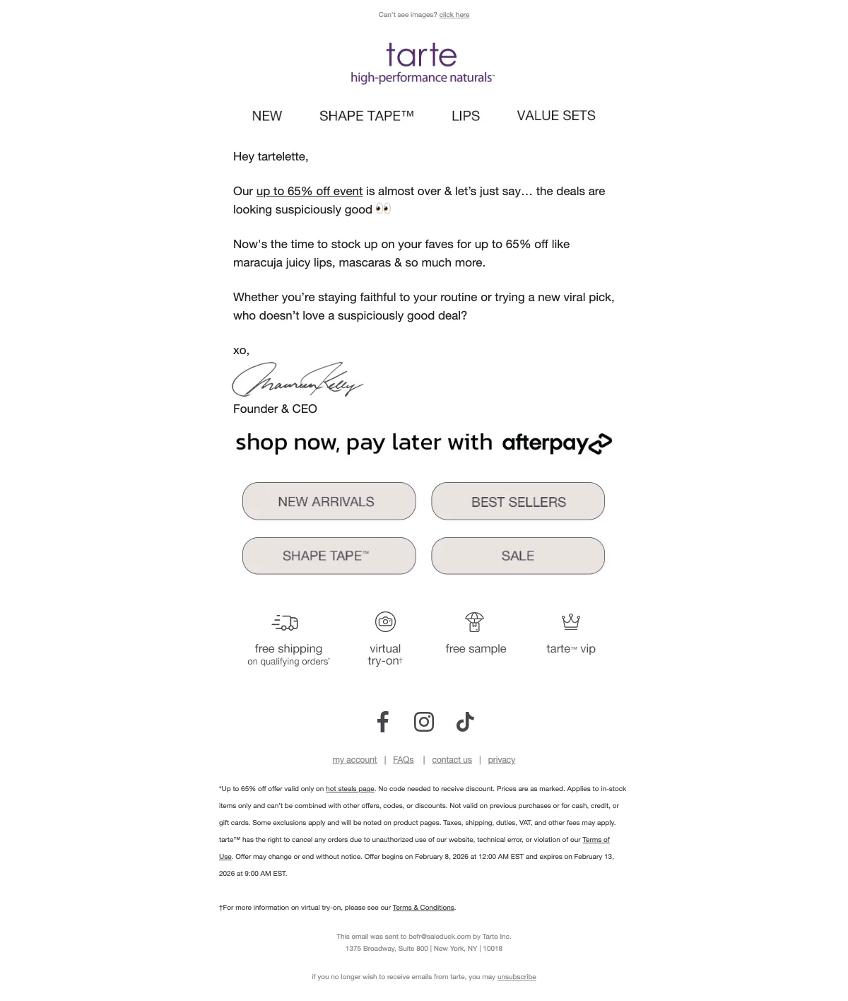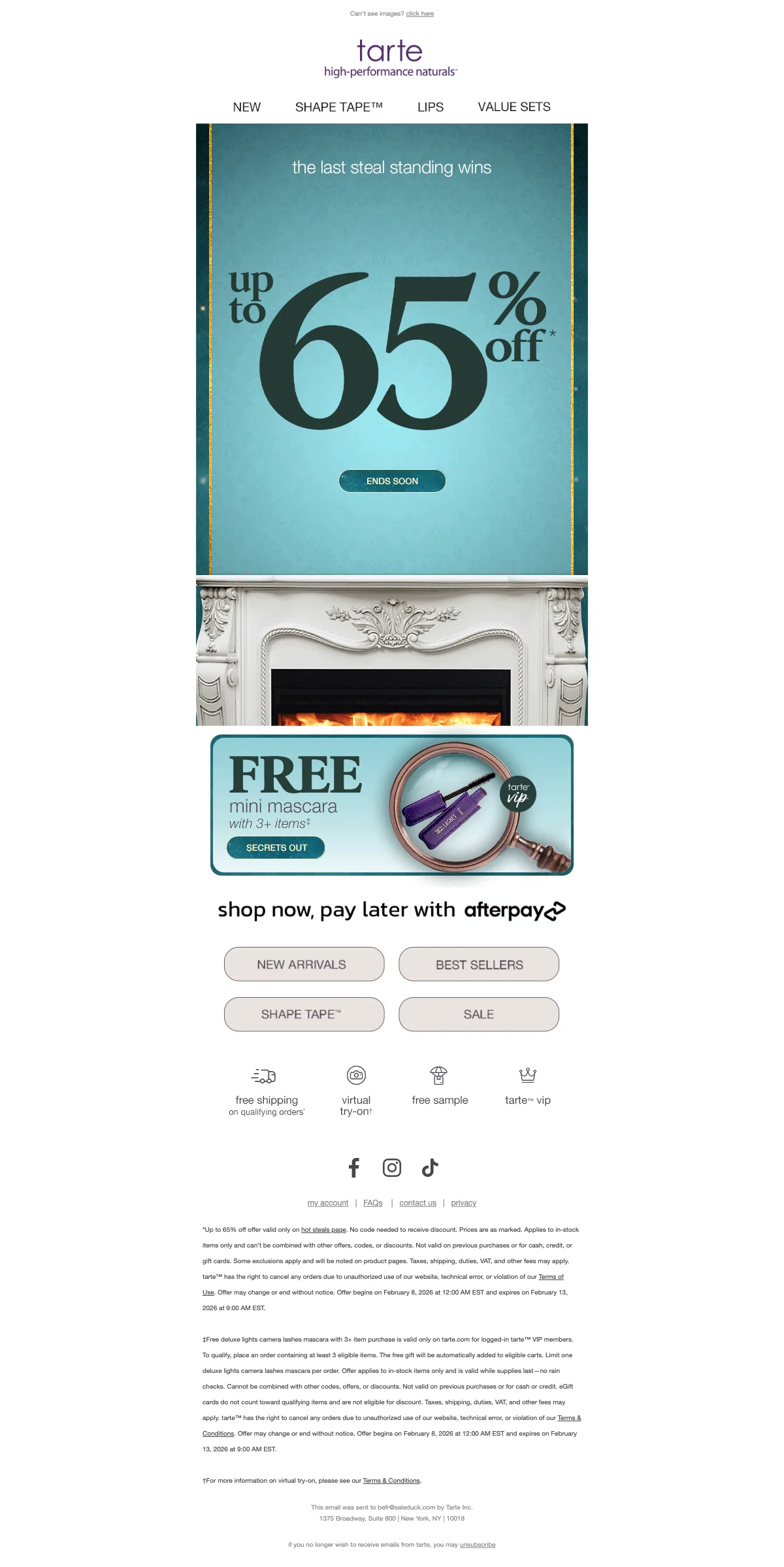 Tarte hot steals jusqu'à 65% de réduction sur produits beauté