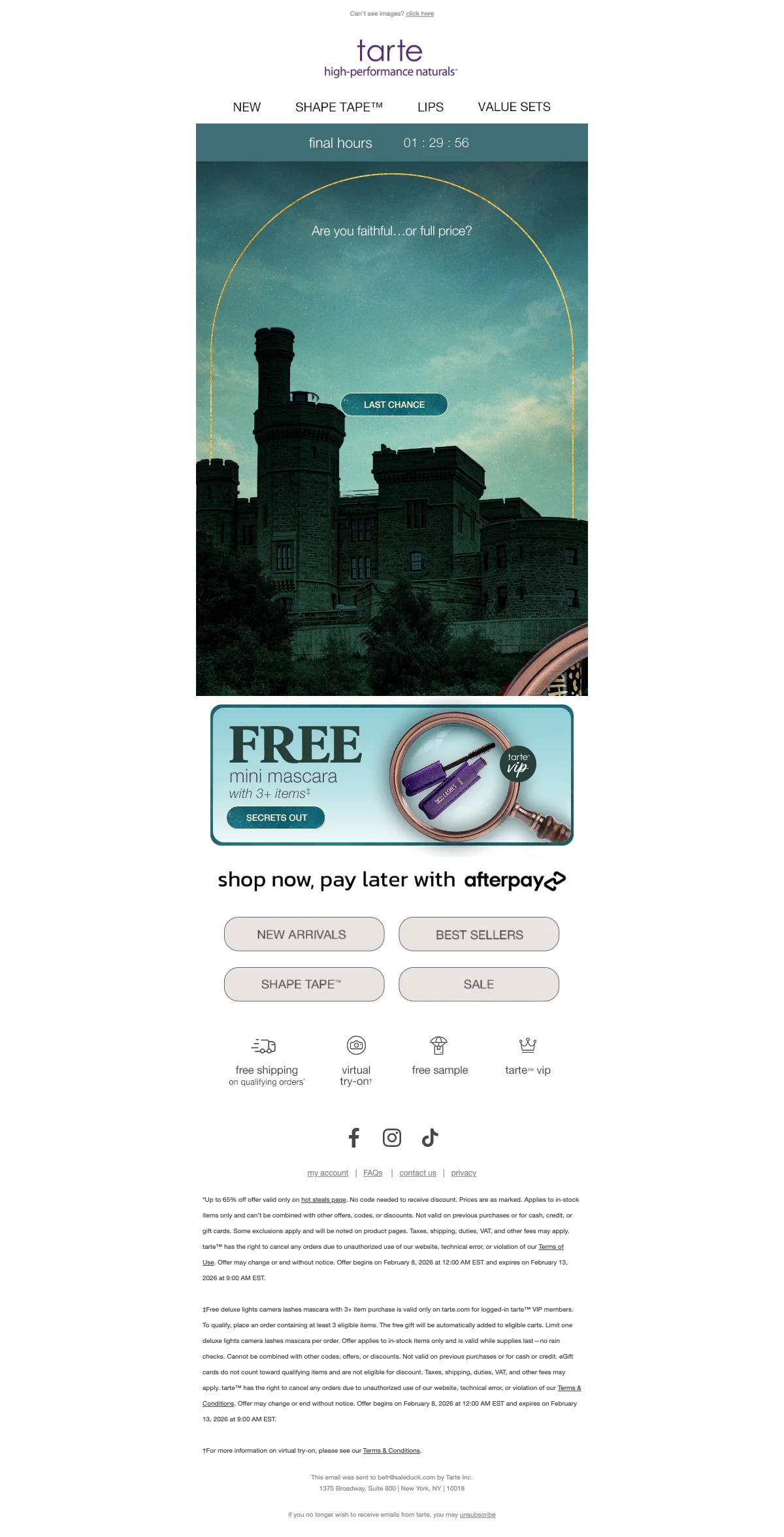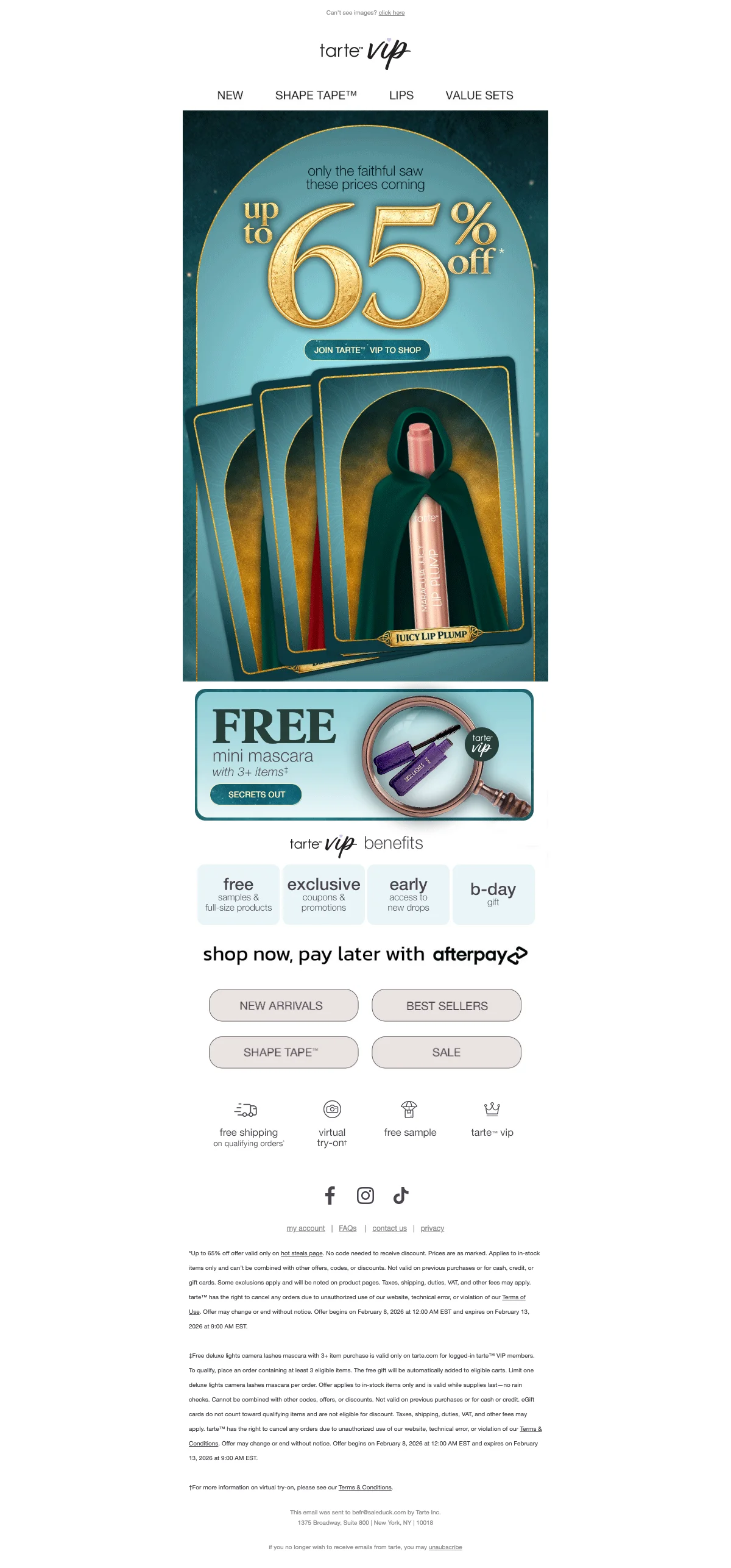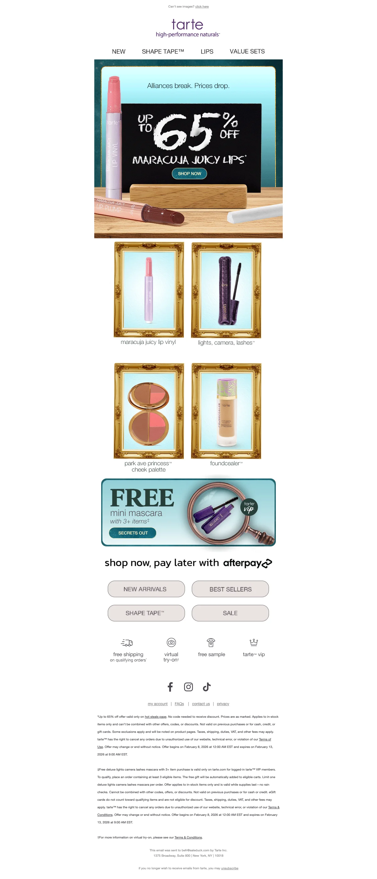 Tarte hot steals jusqu'à 65% de réduction sur produits beauté