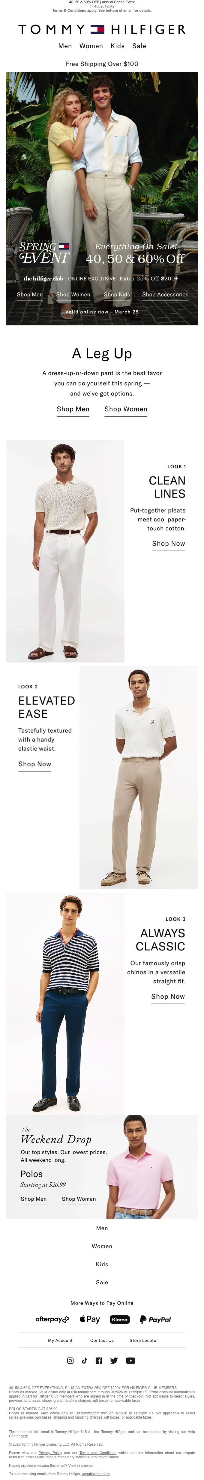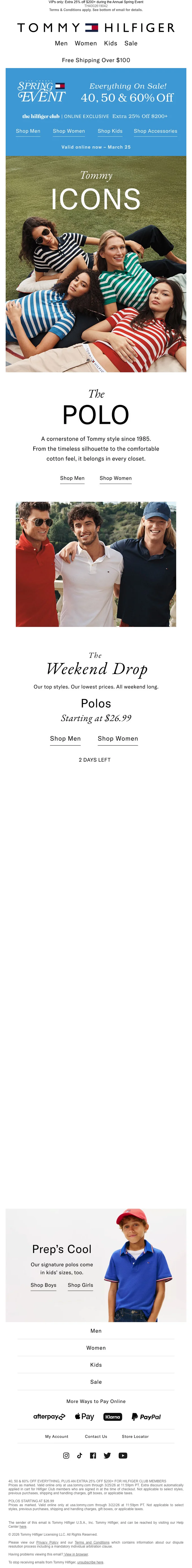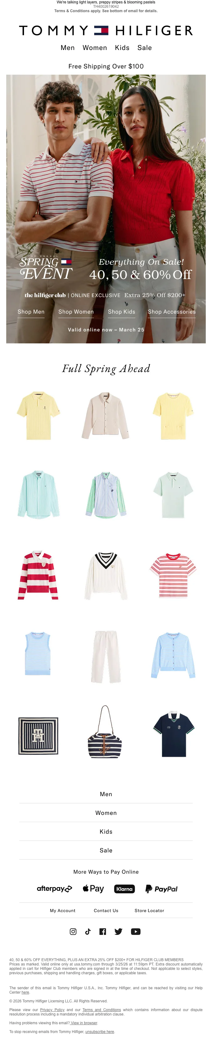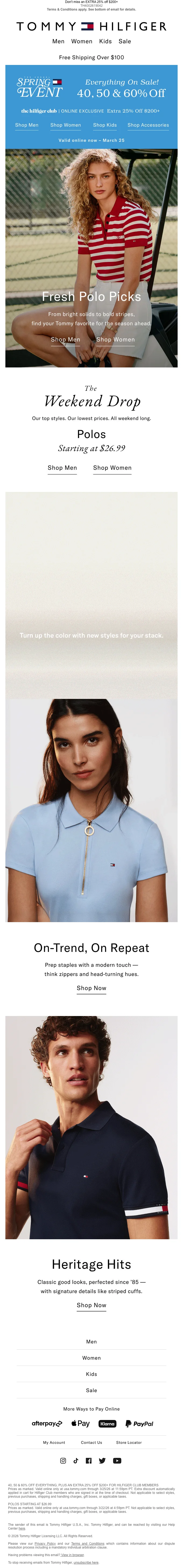 Tommy Hilfiger printemps 40-60% +25% sur tout le site