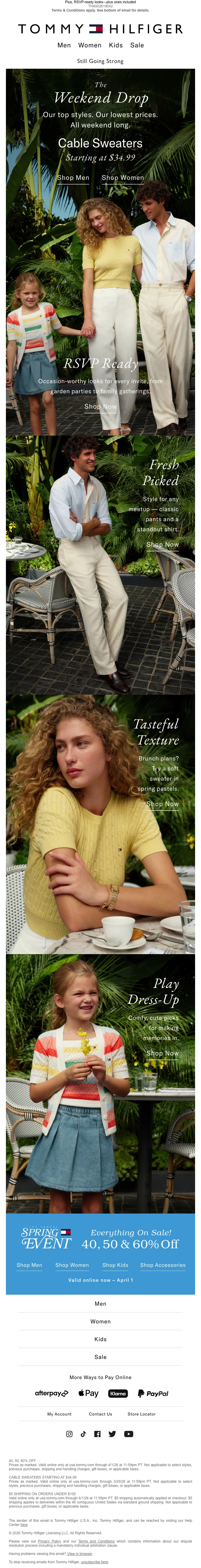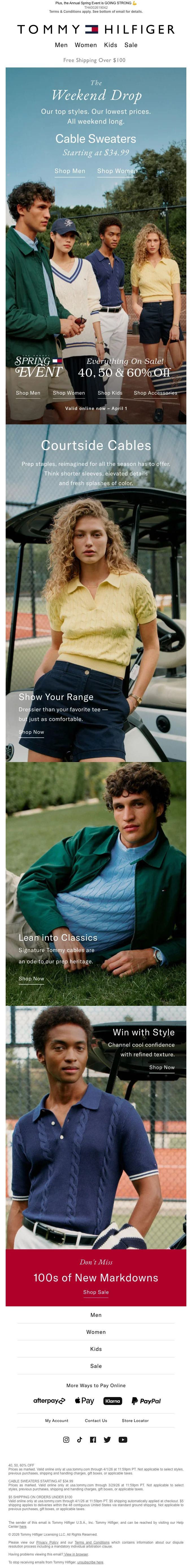Tommy Hilfiger vente printemps 40, 50 et 60% de réduction +25% sup.